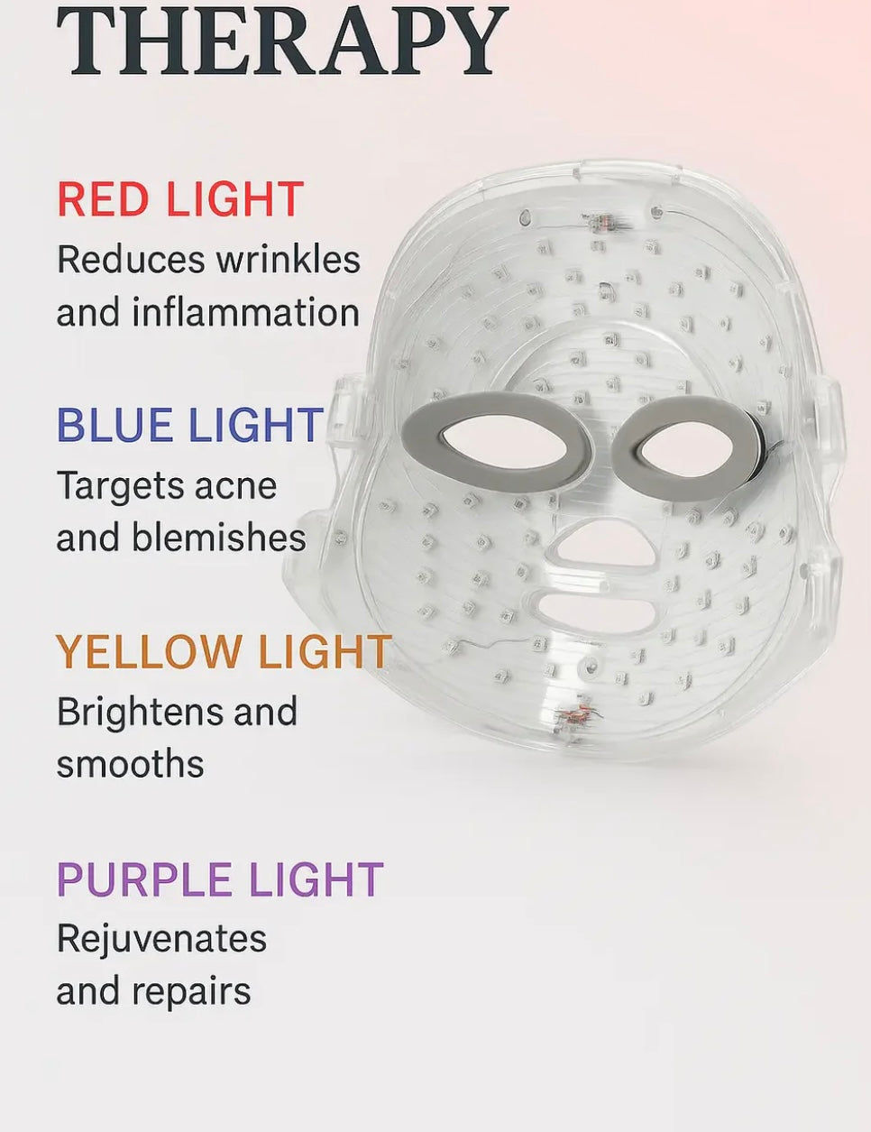 ✔ 7 Colours, 7 Therapies – Each wavelength targets a specific skin concern (wrinkles, acne, pigmentation, dullness, and more).