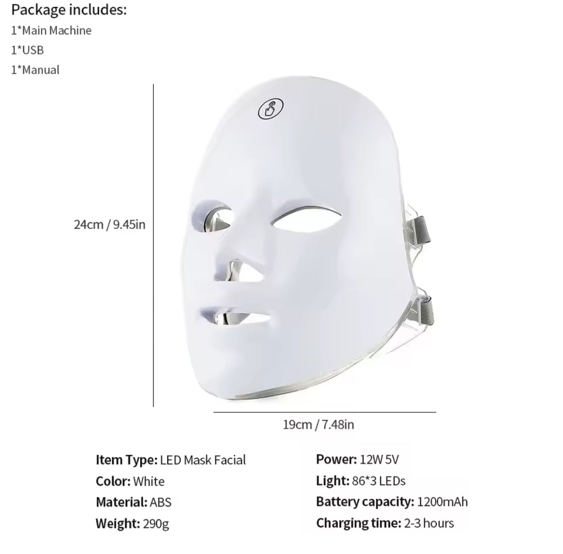 • 1 × Clenari™ Clinic 7-Colour LED GlowMask
